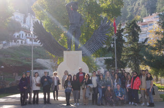 At the foot of the hill is a Roman stadium with seating capacity for 2,500 people. Only the seats remain and the arena is a farmer's field. Granite columns were strewn about the area, which could indicate a columned portico on the north side of the arena.